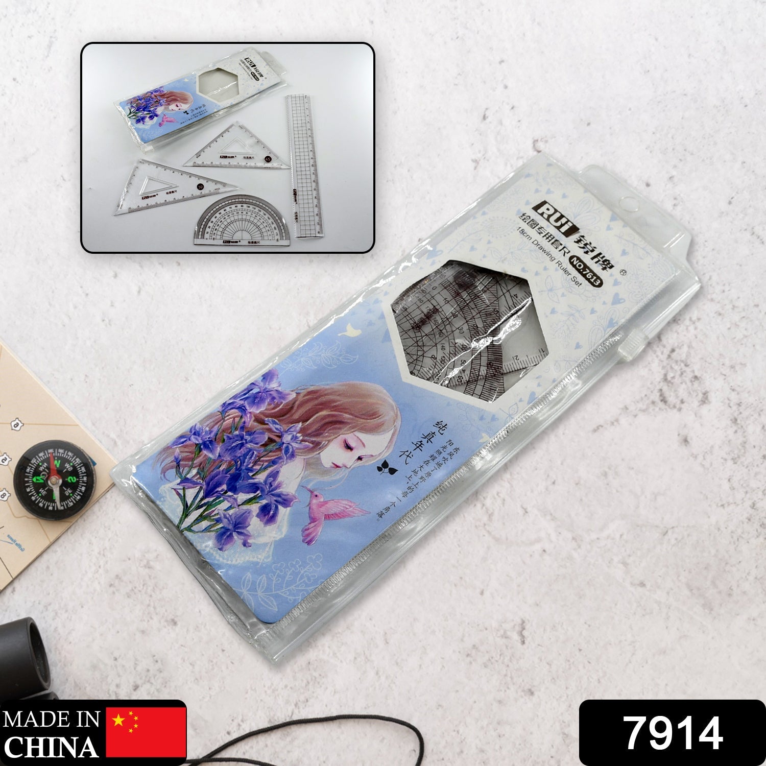 7914 4pcs Ruler Suit Stationery Set for School Student Office ,Draft Rulers for School Office Supplies and Supplies-High School